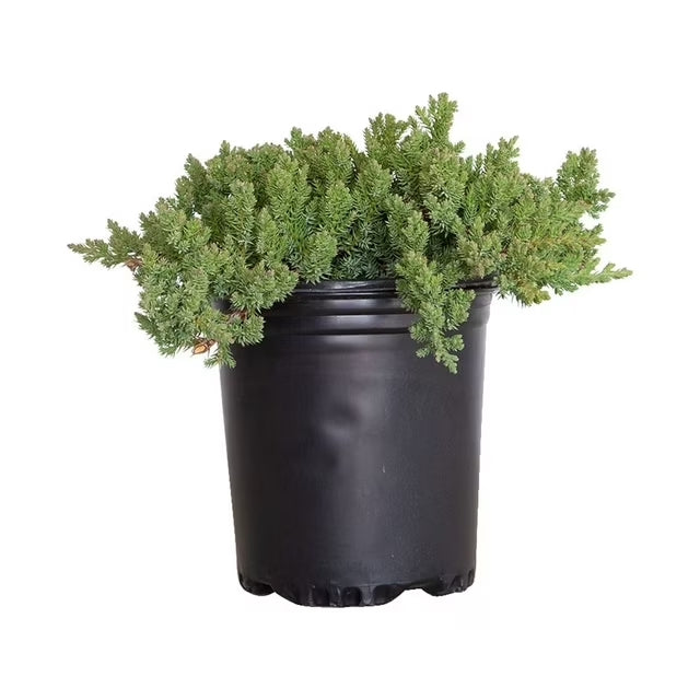 Juniper Procumbens ‘Nana’, also known as Dwarf Japanese Garden Juniper, is a popular, low-growing evergreen ground cover prized for its dense, mat-forming habit and striking blue-green foliage. Its trailing branches radiate outward, creating a graceful, cascading effect ideal for rock gardens, slopes, borders, and mass plantings. This hardy conifer maintains its attractive color year-round, occasionally developing purple tones in winter, and is highly tolerant of drought, deer, and poor soils.