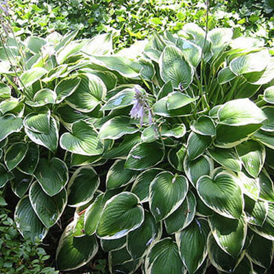 Hosta Francee (Hosta fortunei 'Francee') is a classic, award-winning perennial known for its elegant, heart-shaped dark green leaves edged with crisp white margins. This shade-loving plant forms a dense, arching mound that brings brightness and texture to garden beds, borders, and containers. In late summer, tall scapes rise above the foliage, displaying funnel-shaped, pale lavender flowers that attract hummingbirds and pollinators. Exceptionally low maintenance and adaptable, Francee is perfect for mass plantings, ground cover, or as an accent in mixed perennial gardens.