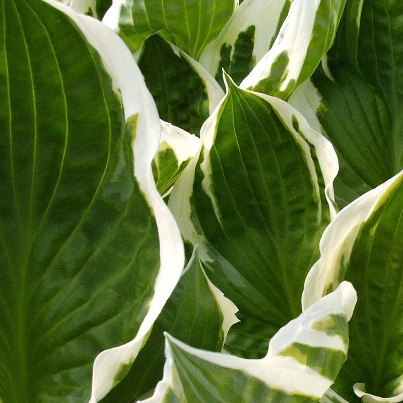 Hosta Patriot (Hosta x 'Patriot') is a celebrated, award-winning perennial known for its striking variegated foliage. Large, heart-shaped, deep green leaves are elegantly edged in crisp, creamy white, forming a dense, clumping mound that brightens shady borders, woodland gardens, and containers. In summer, tall scapes rise above the foliage, displaying funnel-shaped, lavender to pale purple flowers that attract hummingbirds and pollinators. Exceptionally low maintenance and adaptable, Patriot thrives in partial to full shade, tolerates heat and humidity, and is resistant to deer and most pests. Its vigorous growth and bold color make it a standout for shade gardens and mixed plantings3467.