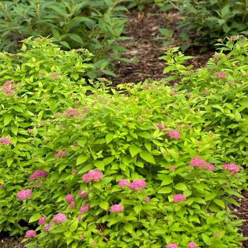 Spirea Double Play® Gold is a standout, easy-care flowering shrub from Proven Winners® that delivers season-long color and garden impact. This compact, mounded plant features brilliant golden-yellow foliage that emerges in spring and holds its color through fall, providing a vibrant backdrop for the profusion of hot pink flower clusters that bloom in early summer and often rebloom with light deadheading. Double Play® Gold is deer resistant, drought tolerant once established, and requires minimal maintenance, making it perfect for borders, mass plantings, foundation beds, or as a colorful accent in containers. Its tidy habit and improved disease resistance ensure it looks great with little effort, brightening up any landscape all season long[2][3][5][7].